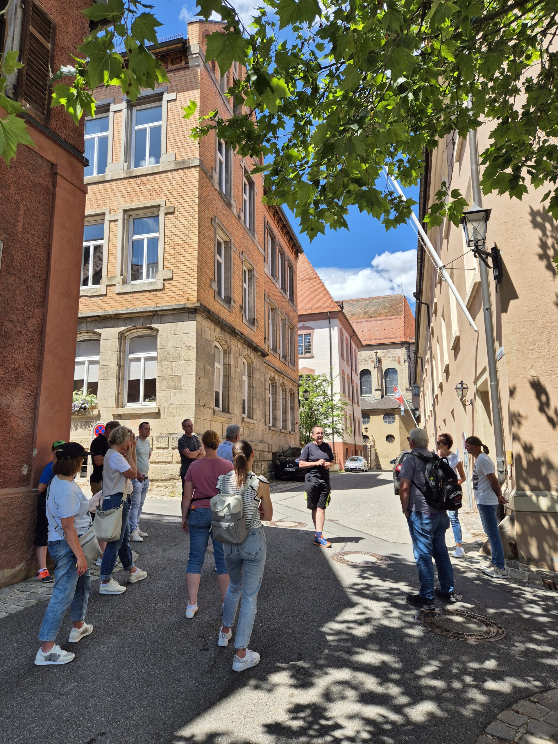Weiter in der Altstadt von Rottweil angekommen, gönnten wir uns bei sommerlichen Temperaturen ein Eis, bevor wir bei einer Stadtführung mehr über die Geschichte und Besonderheiten der ältesten Stadt Baden-Württembergs erfuhren.