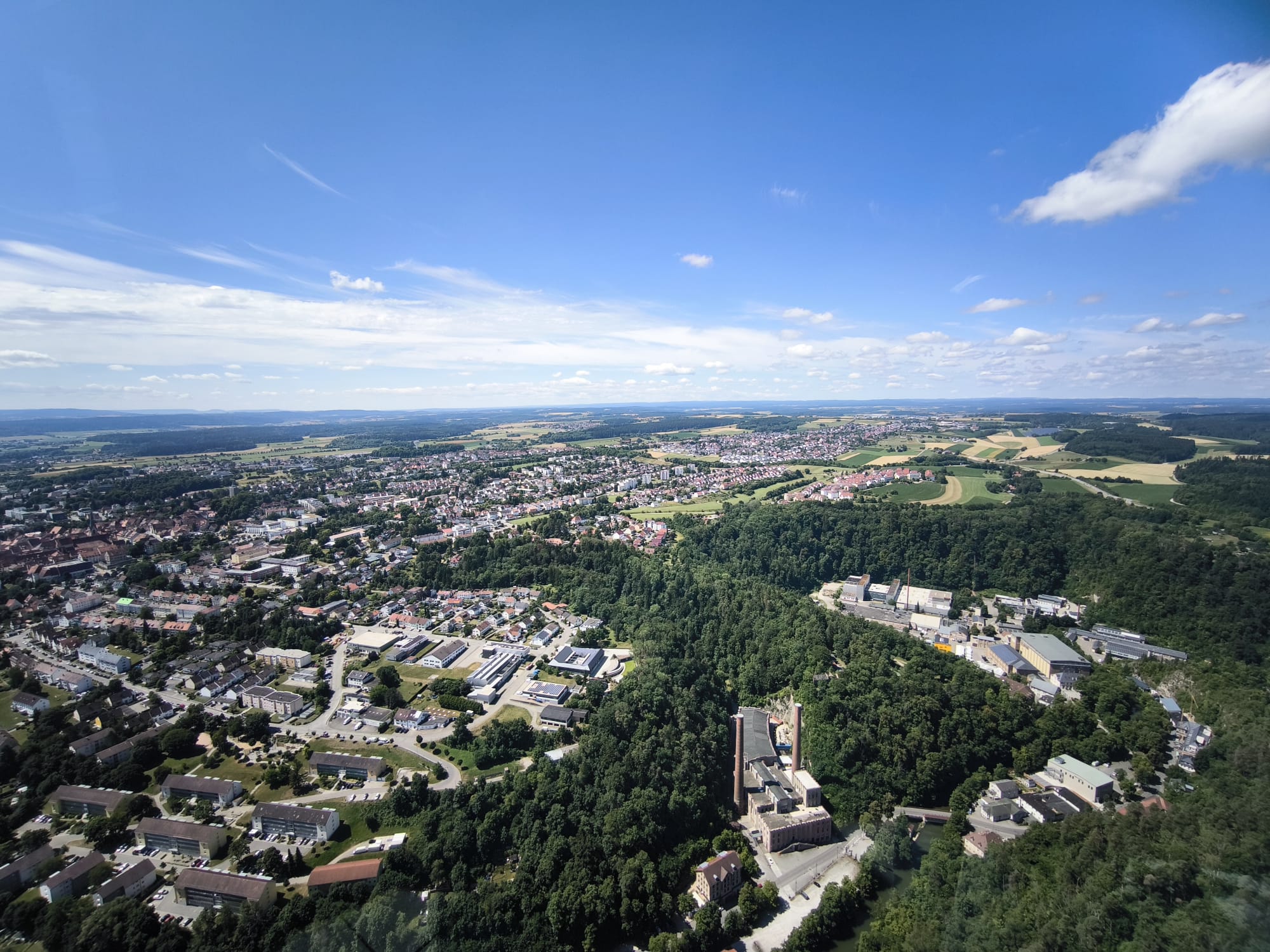 Weiter ging es zum beeindruckenden Aufzugstestturm Thyssenkrupp in Rottweil. Bei einer informativen Führung rund um den Turm erhielten wir spannende Einblicke in die Planung, die Architektur und den Bau dieses außergewöhnlichen Bauwerks. Anschließend fuhren wir mit einem der Aufzüge in die Höhe und konnten von oben eine fantastische Aussicht über Rottweil und die umliegende Landschaft genießen.