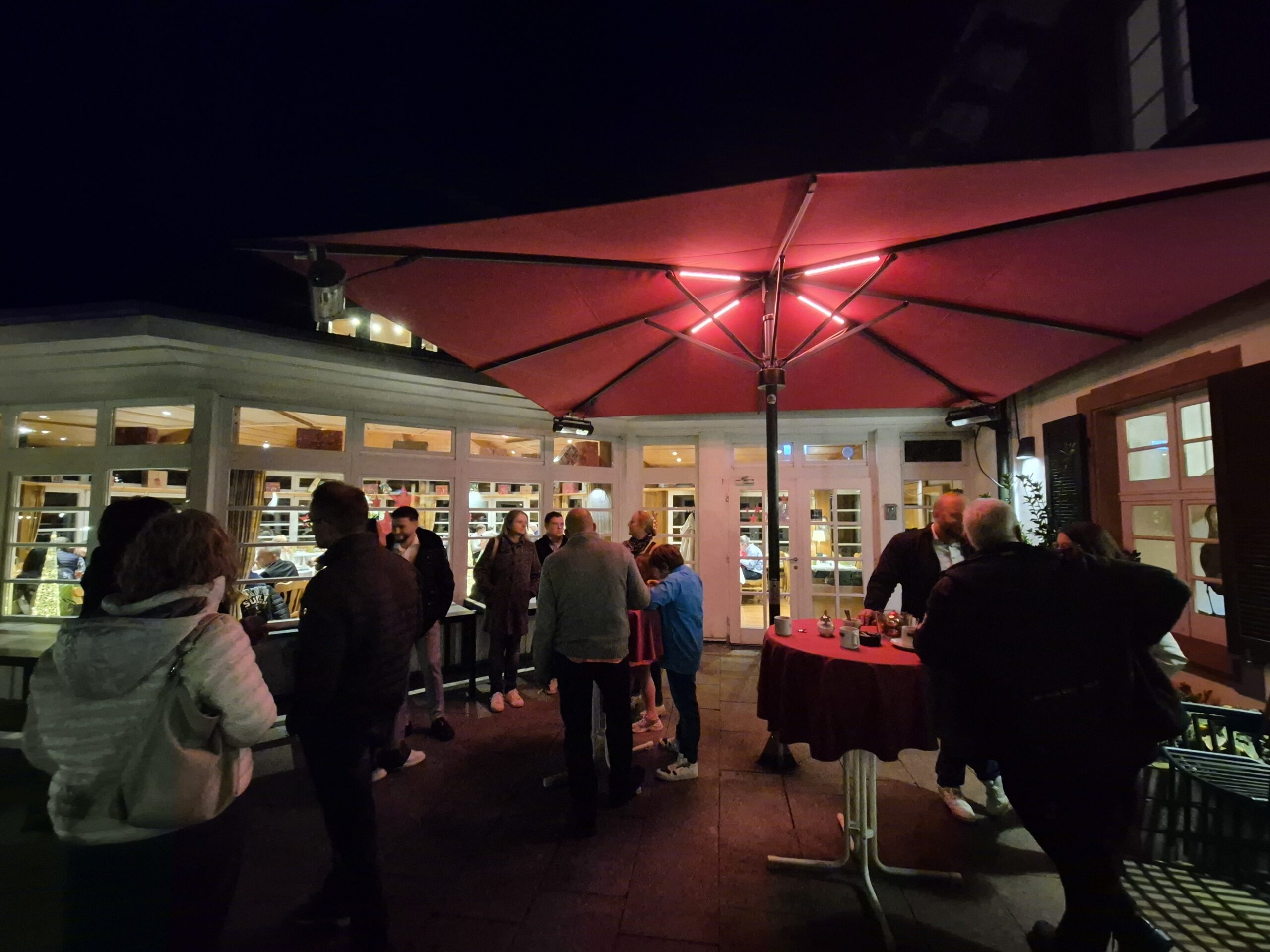 Hier erwartete uns zum Auftakt des Abends ein gemütlicher Glühwein-Umtrunk im Seehaus-Garten in weihnachtlicher Atmosphäre mit Feuerschale.